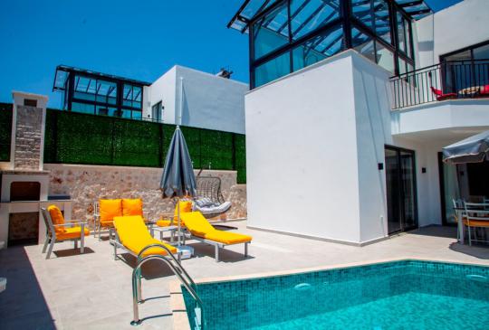 There is a garden swing, hammock and barbecue in the garden of the villa, which is close to the center of Kalkan. It has both an outside and an indoor pool. For large families or groups of families, there are Villa Gulce, Villa Yildiz and Villa Ozgur next door.