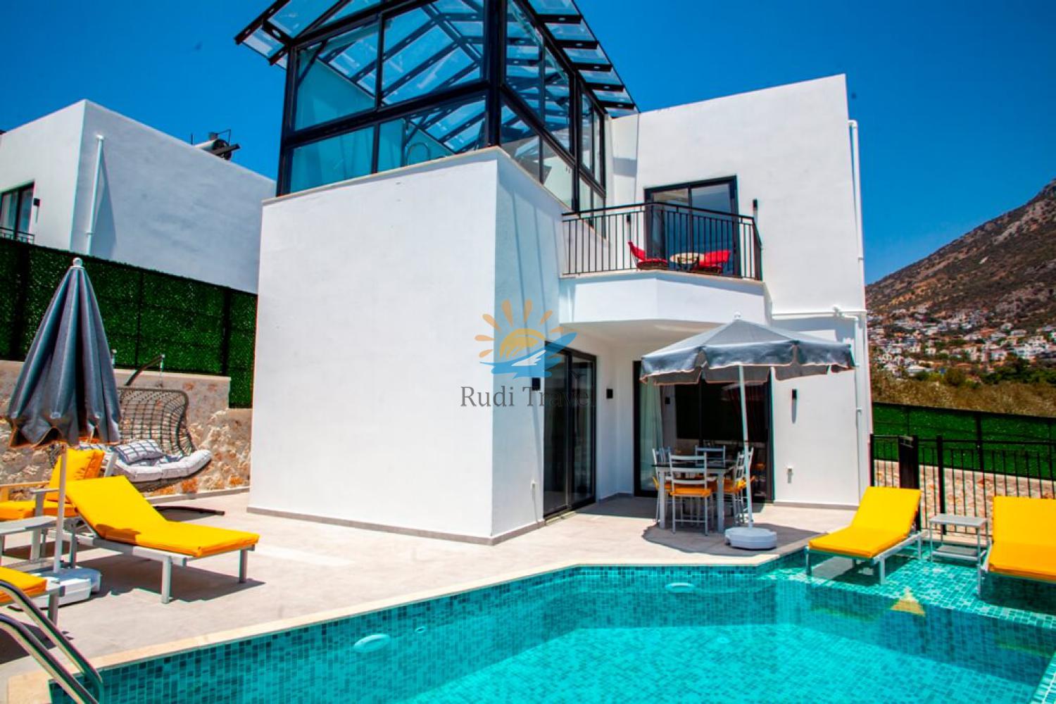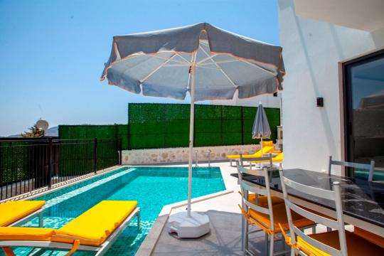Villa Guney Town is located in the Ortaalan area of Kalkan. The villa has sea views and also has a heated indoor pool and is among the ideal villa options for a holiday. The villa is located 100 meters from the city center which is 5 minutes walk to town, shops, restaurants etc. Villa Güney Town has 2 bedrooms and is sleep to 4 people.