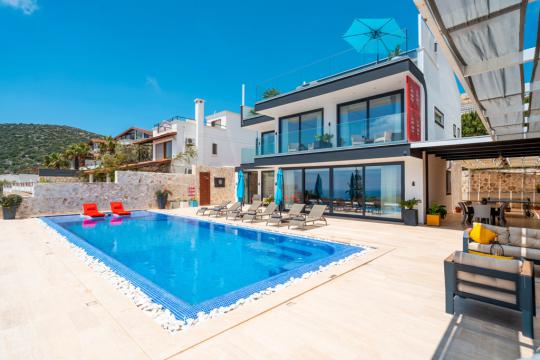 Villa Luxury Seaview is walk distance to shops only 1 minute and Kalkan town is only 15-20 minutes walk. Our villa has 2 swimming pool. First pool is big pool and plus on the roof terrace we have pool. Roof Terrace Pool is heated pool and if you want to turn on it will be extra cost.