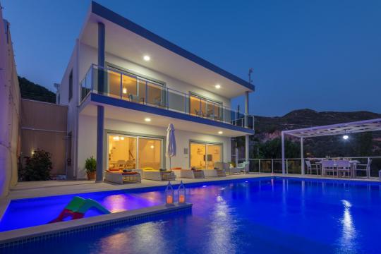 Every room in the villa has stunning uninterrupted views of the Mediterranean, Kalkan islands and Patara Beach. There is a large main swimming pool with two incorporated wading pools, outside shower, fully shaded dining area and outdoor furnishings. Downstairs, the villa is open plan with a large well-equipped kitchen with new Siemens appliances throughout and a breakfast bar.