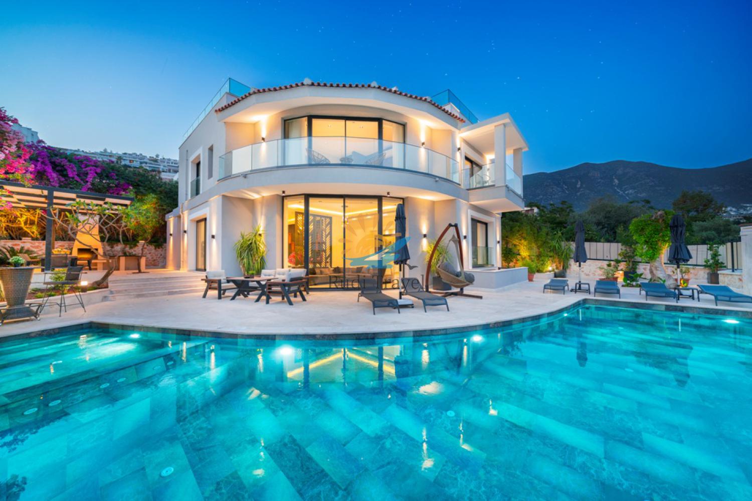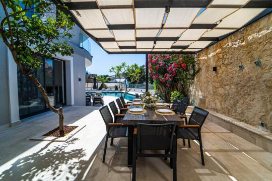 Built to exacting specifications by one of Kalkan Villa leading architects makes the most of its stunning sea views by effectively bringing the ‘outside in’ via glass doors that open out fully on to the pool terrace and large private pool with jacuzzi and large pool terrace, dining table and stone build bbq.