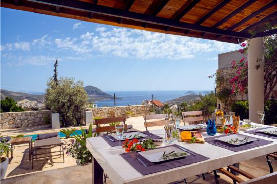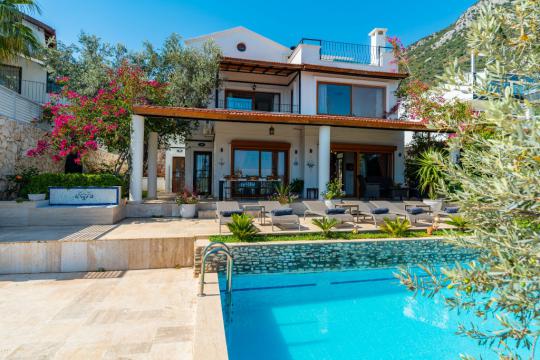 Panoramic Kalkan and Sea View, Large Family Villa, Luxurious interior and exterior decoration, Quiet Location, Barbecue on the pool terrace, Rental Villas and Summer Houses Close to Kalkan Center and the Sea, Kalkan Daily Rental Luxury Holiday Home.