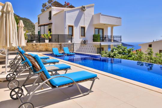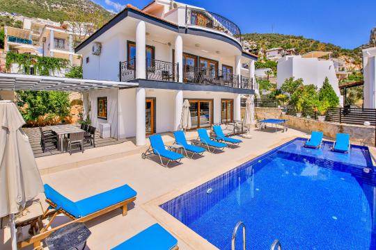 Our villa is a beautiful modern 8-person Kalkan rental villa with a private pool and magnificent terrace, suitable for families who do not like to walk and want a villa in Kalkan town center, where you will enjoy your holiday.