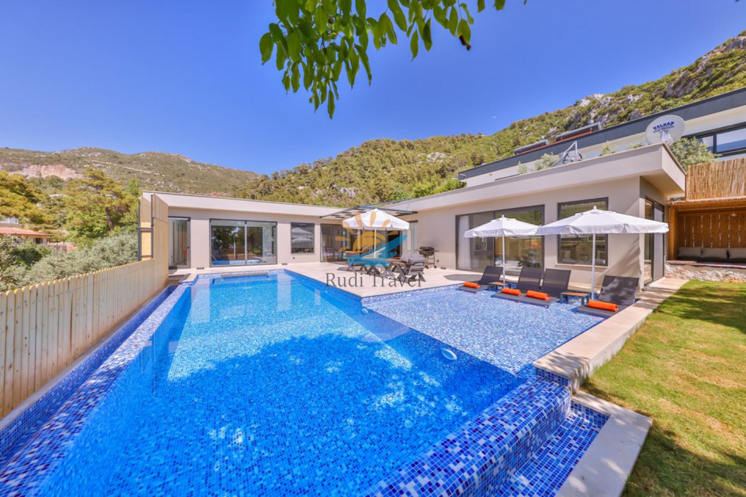 Villa Aqua Luxury for Rent, located in the Islamlar village of Kalkan, a world-famous holiday resort, as its name suggests, has been spending their holidays in Rental Villas, which have recently been preferred by our holidaymakers, and they spend pleasant, fun and pleasant times together.