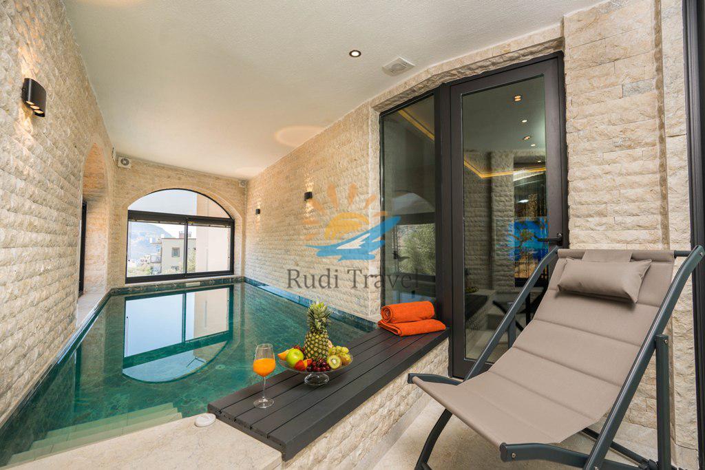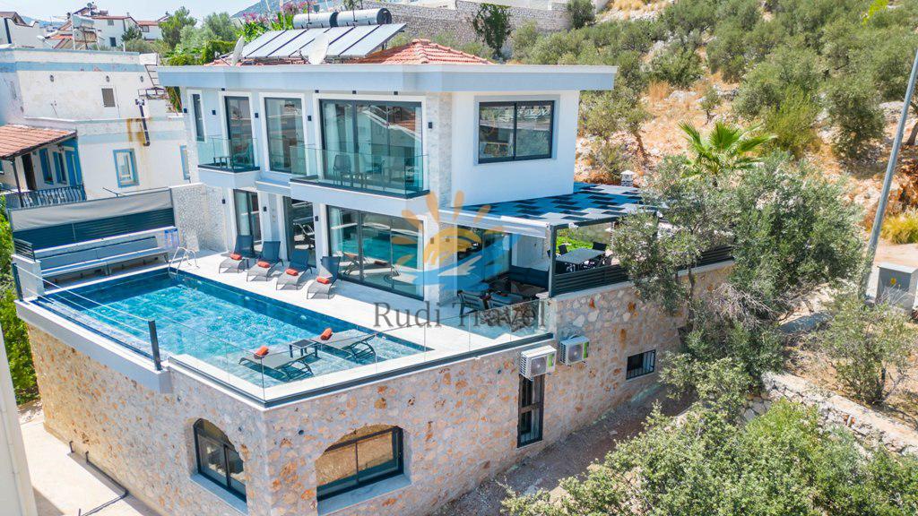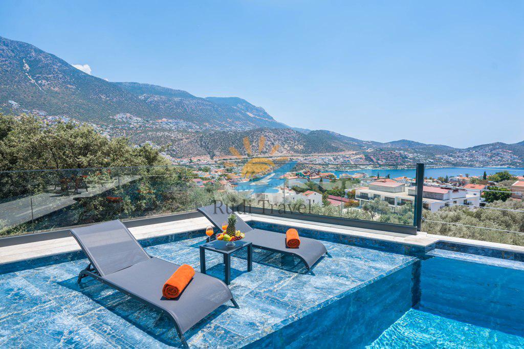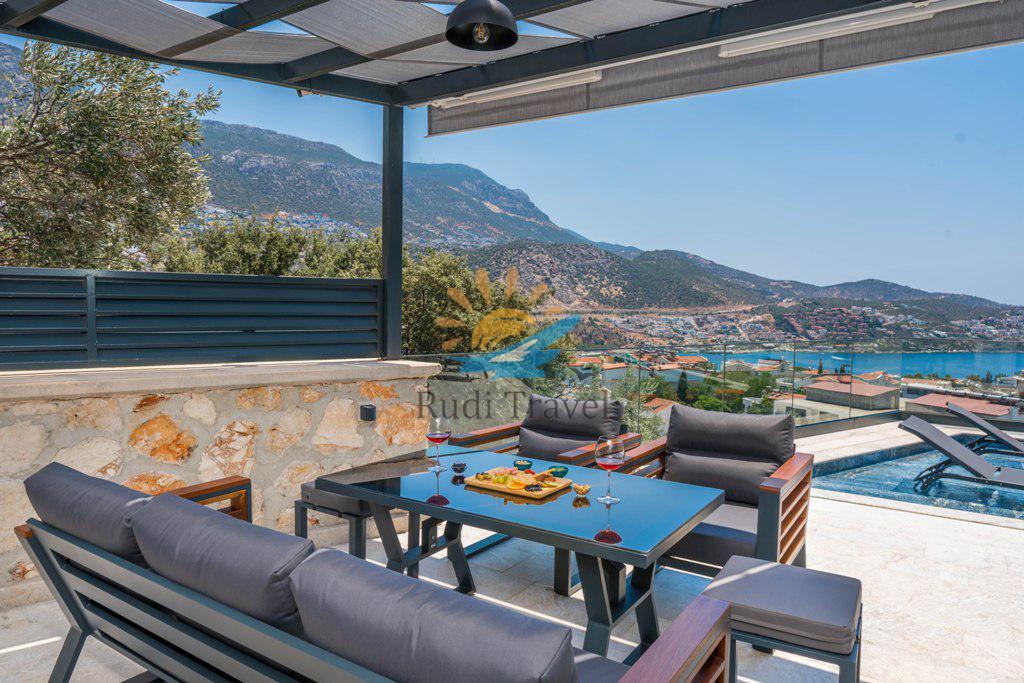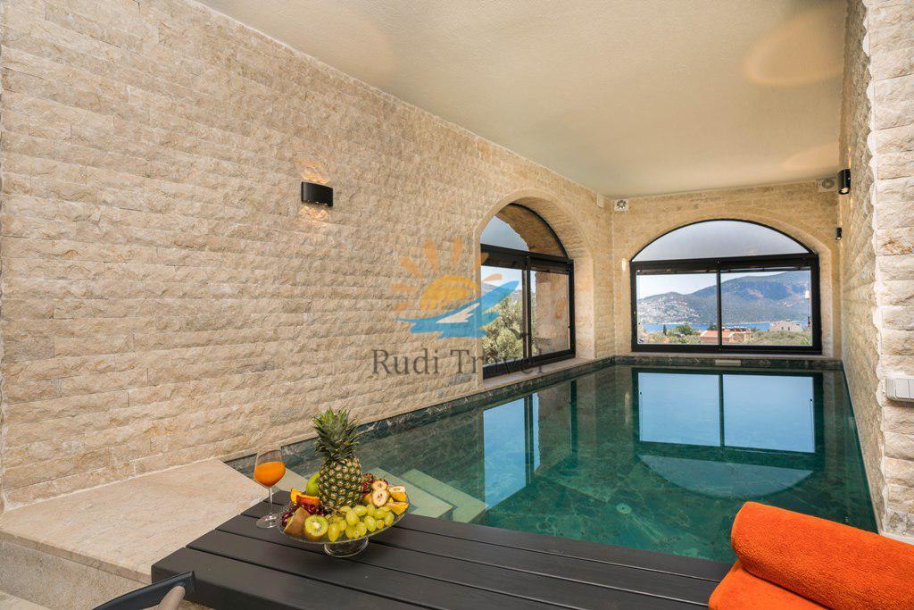 Sea view, Suitable for honeymoon couples, Kalkan center, Detached villa, Luxury designed villa, Heated indoor pool, Billiards and Sauna