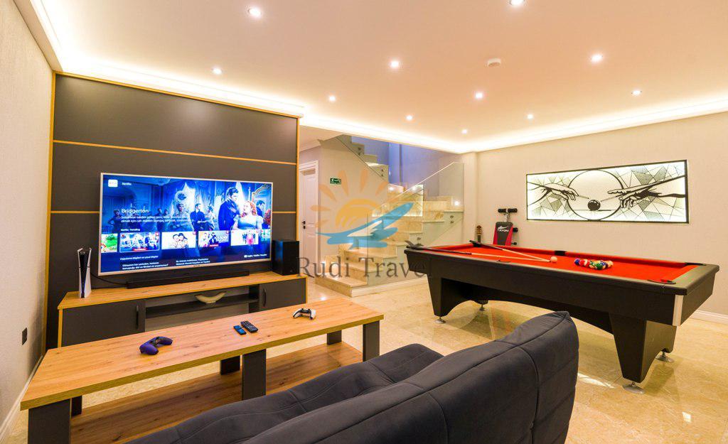 The villa also includes an American billiards table and a PlayStation 5.