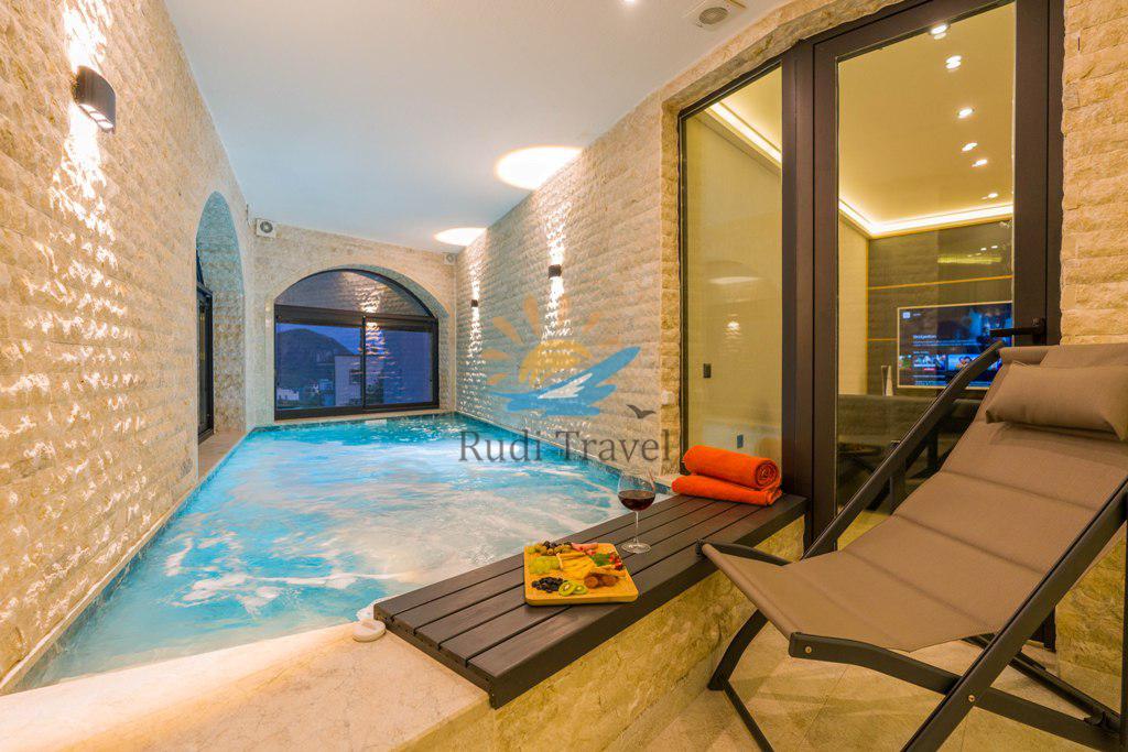 Our villa's indoor pool measures 5 m x 2.30 m, with a depth of 1.20 cm.