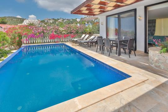 Villa has been built very modern and luxury inside and outside. Villa outside space is fabulous. There are large pool with stunning views overlooking Kalkan sea and plenty of space around it relaxing on the sun-loungers provided.