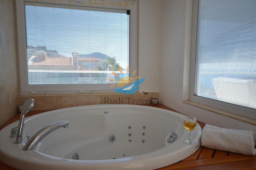 In our luxurious Kalkan villa, you can cool off in the Mediterranean warmth in the spacious pool, and enjoy delicious breakfasts and dinners with your loved ones and friends on the spacious pool terrace with its dining table and chairs.