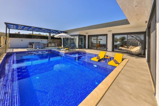 Villa Tayyar Kalkan Pool dimensions are 9m X 4m, Depth: 1.60 m.