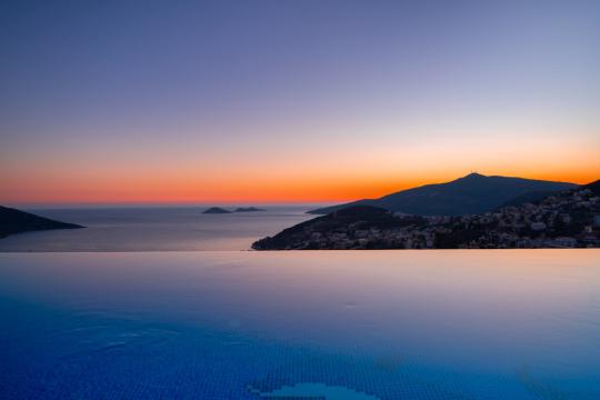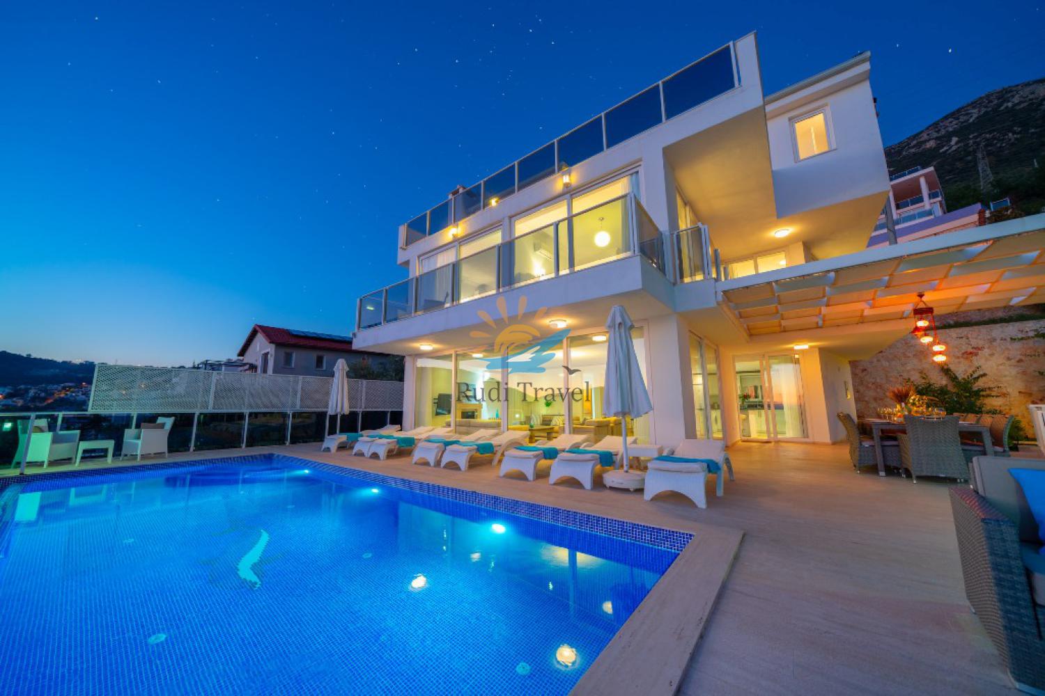 Panoramic view of Kalkan and sea, Large family villa, Luxury interior and exterior decoration, Quiet location, Rental villas and summer houses located close to Kalkan center and sea, Kalkan daily rental luxury holiday house, Table football in the game room, table tennis villa, Kalkan private holiday Villa, Kalkan rental villa.
